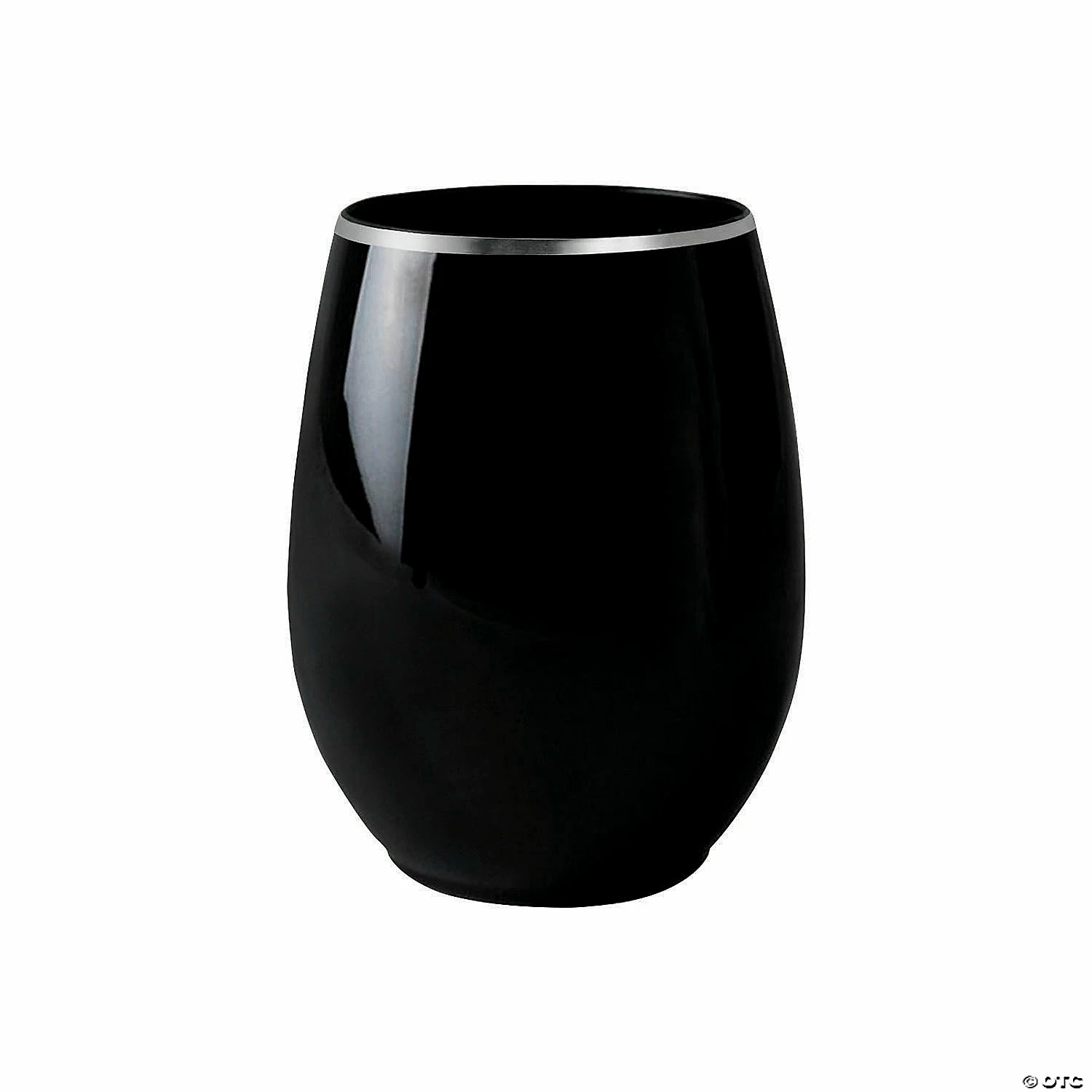 New 🧨 12 oz. Black with Silver Elegant Stemless Plastic Wine Glasses (32 Glasses) ❤️