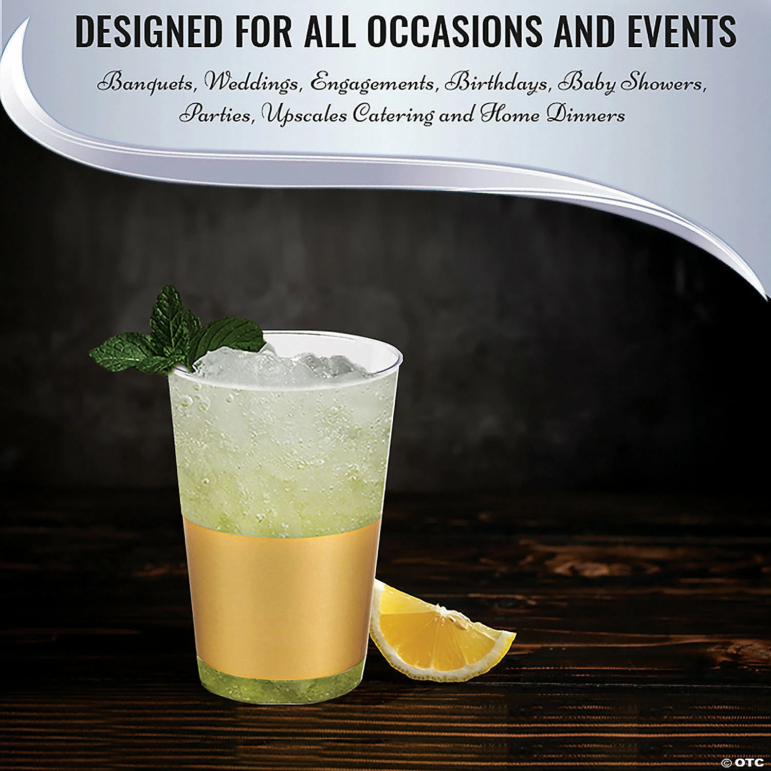 Promo π 12 oz. Clear with Metallic Gold Thick Bottom Round Disposable Plastic Tumblers (90 Cups) π