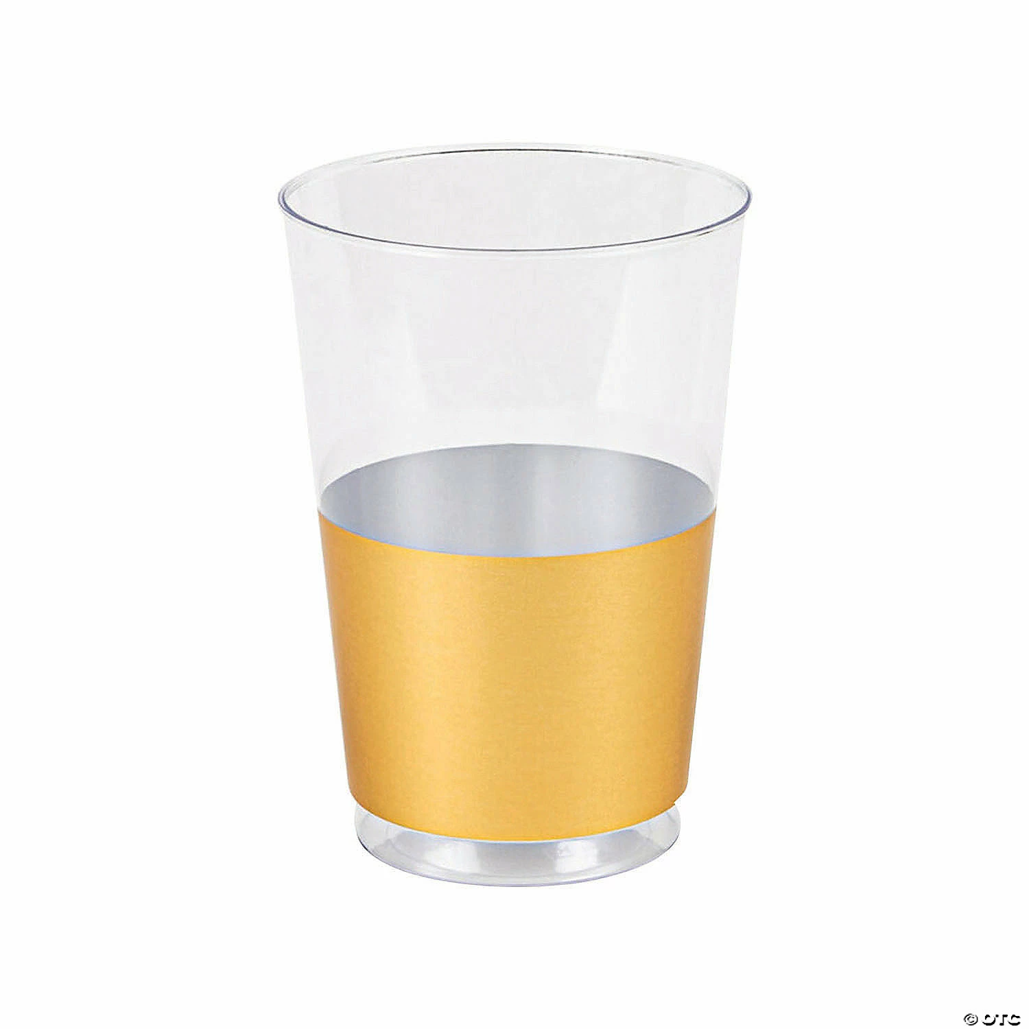β’ Approx. top diameter: 3″β’ Approx. bottom diameter: 2″β’ Approx. height: 4 Β½”β’ Flush fill capacity:Β 12 ozβ’ Practical fill capacity:Β 10 ozβ’ Quantity: 9 packs of 10Β tumblersβ’ Color:Β Clear with Metallic Gold Rimβ’ Shape:Β Roundβ’ Material:Β Plasticβ’ Disposable:Β One-time, single party useβ’ Recycling code:Β #6 PS Polystyreneβ’ BPA-free:Β YesΒ Β Special Shipping Information:Β This item ships separately from other items in your order.Β This item cannot ship to a P.O. Box.Β This item may be subject to additional processing days.Β Β Item is not eligible for expedited shipping.Β Β Β Β You may initiate a return for unused items within 30 days, if the items are in original packaging with all original materials included with the shipment.