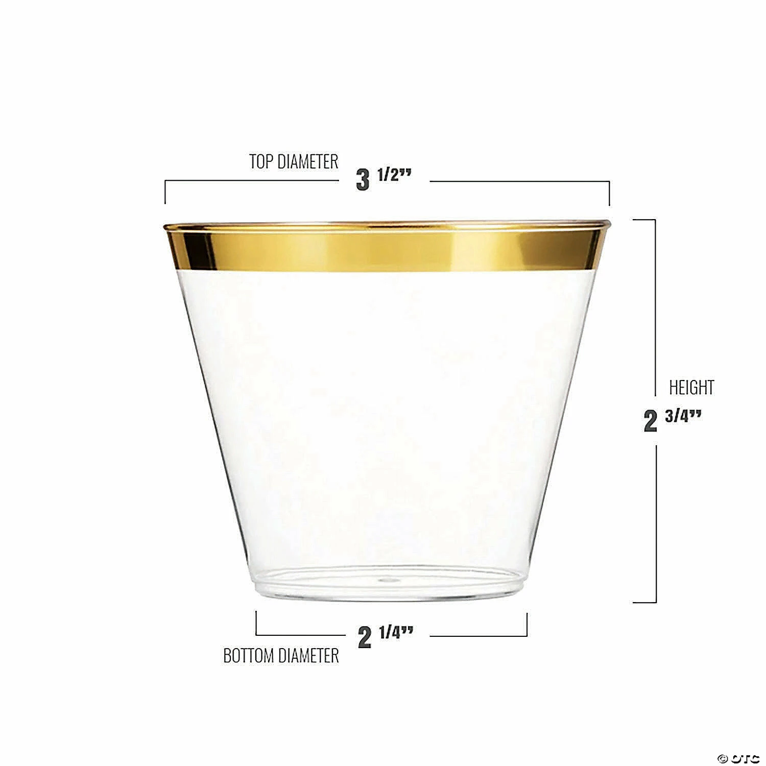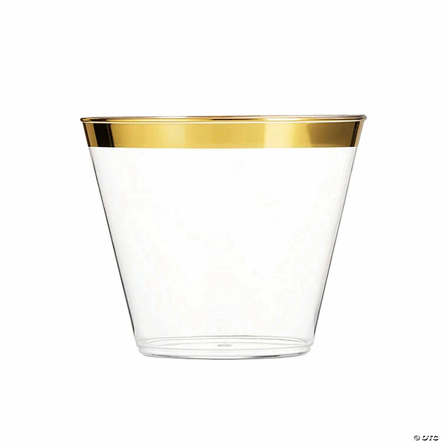 Flash Sale π 9 oz. Clear with Metallic Gold Rim Round Disposable Plastic Cups (140 Cups) π