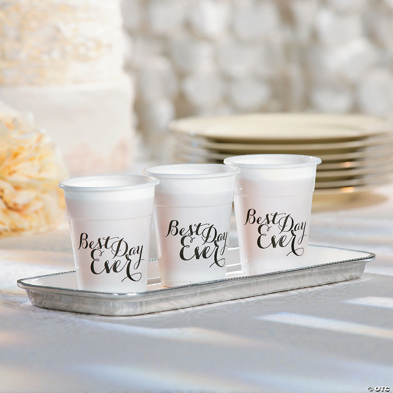 These disposable cups make for an easy cleanup at your wedding reception! Perfect for a Best Day Ever theme, keep these cups with the rest of your wedding supplies near your buffet and refreshment tables! Each printed with βBest Day Ever.β Plastic. (50 pcs. per unit) 4 1/4″ 16 oz. Β© OTC