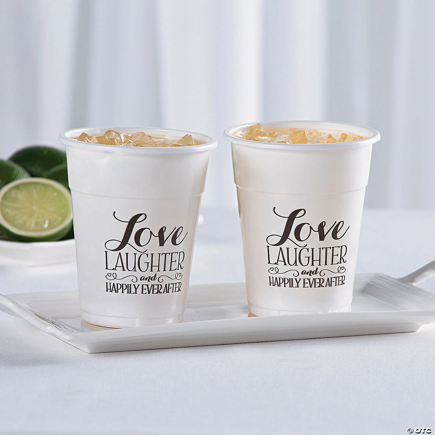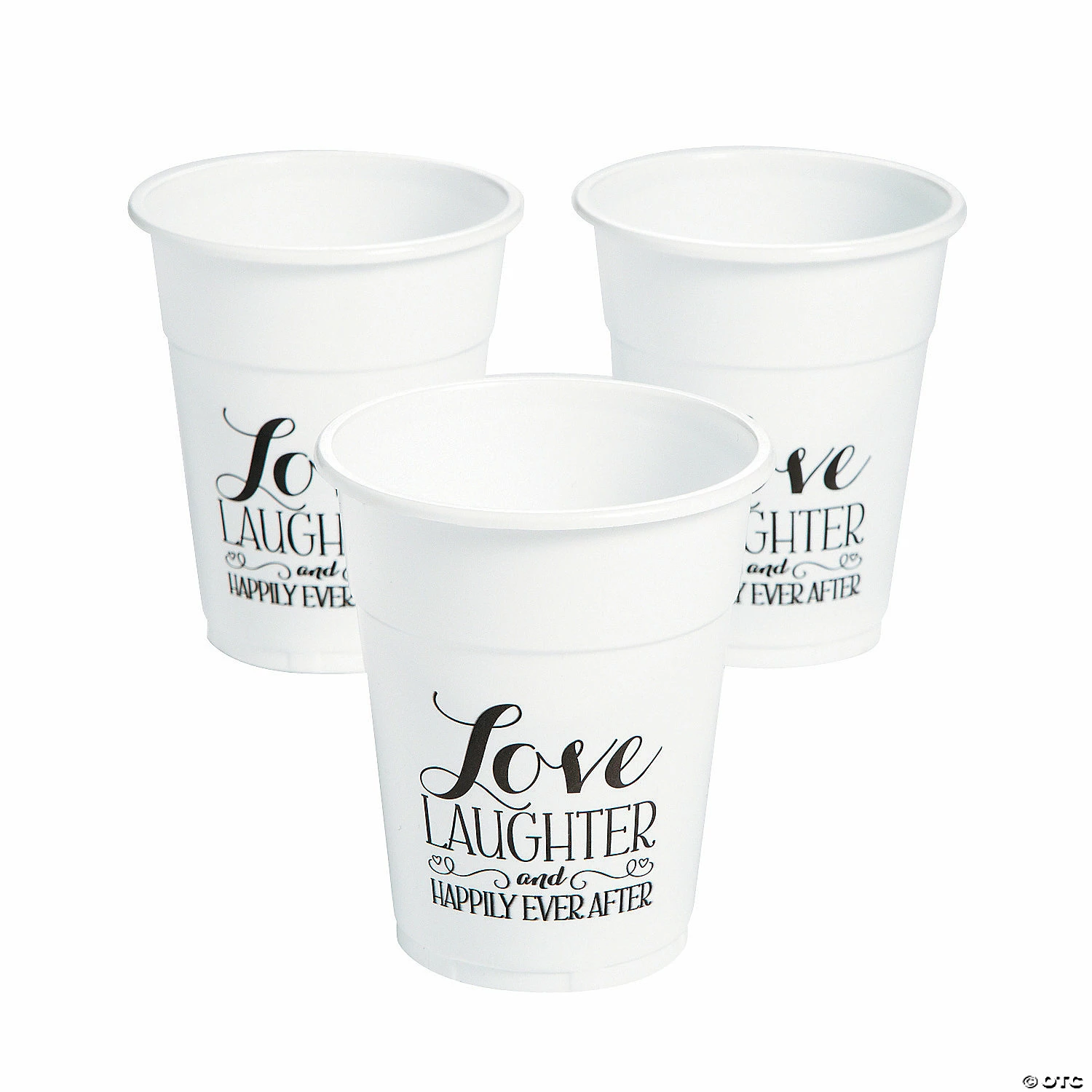 Toast to love with loved ones using these disposable plastic cups. Donβt worry about cleanup after saying βI doβ with these wedding supplies! Printed with βLove Laughter and Happily Ever After”, theyβre perfect for a wedding reception or bridal shower. Shop even more wedding tableware and supplies for your big day on our site! Plastic. (50 pcs. per unit) 4 1/2″ 16 oz. Β© OTC