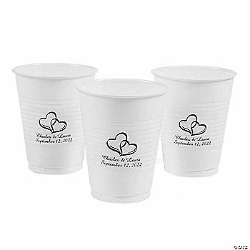 New β Personalized Two Hearts with Name & Wedding Date Plastic Cups – 40 Pc. π₯°